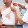 実技では柔道整復に関する基本的な方法から、臨床の場でどのような方法が用いられているかを学び、実際に様々な柔道整復の治療法を段階的に身につけていきます。