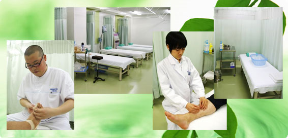 単学科の学校には珍しく整骨院と鍼灸院を併設しており、学生ではなく、資格を取得している柔道整復師・鍼灸師が治療します。